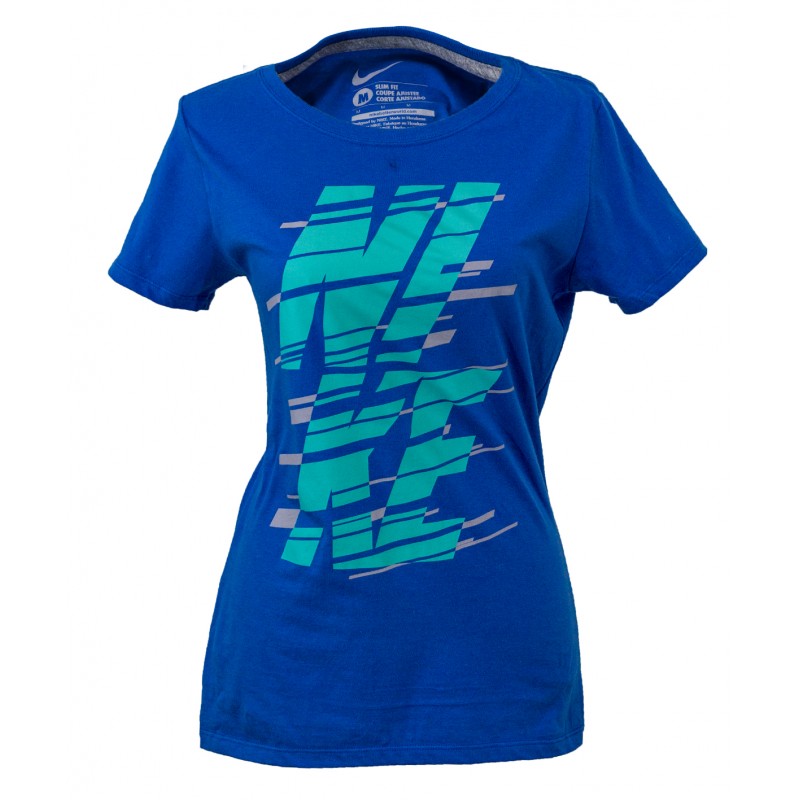 POLERA NIKE AZUL CON LETRAS VERDE AGUA TALLA M MANGA CORTA