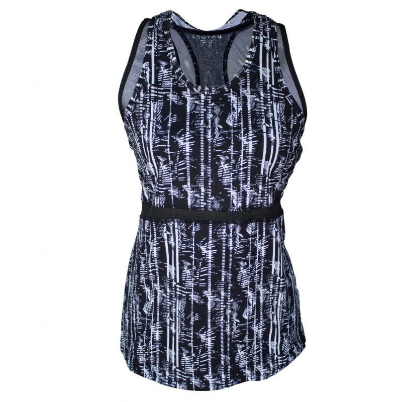 POLERA SOYBU NEGRO ESTAMPADO BLANCO TALLA L SIN MANGAS
